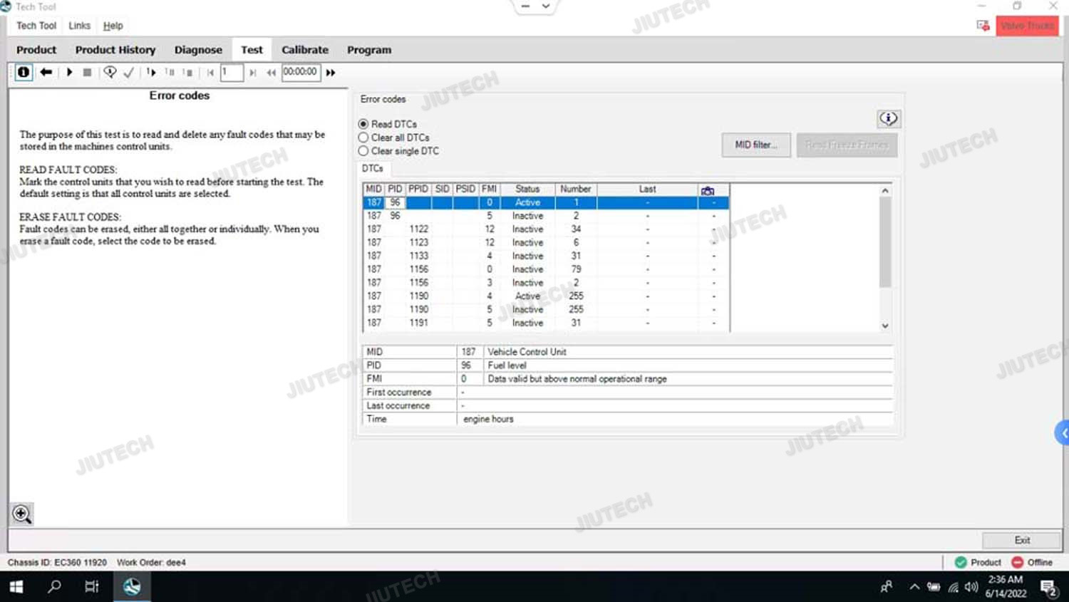 Dieses Werkzeug bietet für V-OLVO-Lkw und andere schwere Fahrzeuge, die seit dem Jahr 2002 mit einer Hochgeschwindigkeitsverbindung an die ECU hergestellt wurden, eine vollständige Bandbreite an diagnostischen Operationen.Bei älteren V-OLVO-Schwerfahrzeugen, hergestellt im Jahre 1998 oder früher, alle Diagnosevorgänge, die auf der üblichen (niedrigeren) Geschwindigkeitsverbindung zur ECU verfügbar sind.